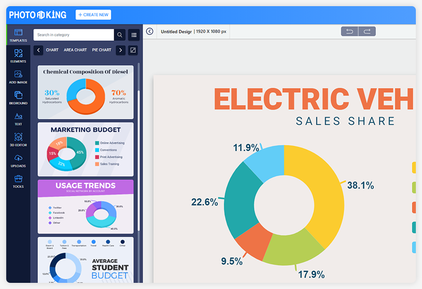 Pick from 100+ ready to use templates within PhotoADKing's online Graph Maker to create graphs and charts.